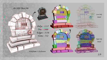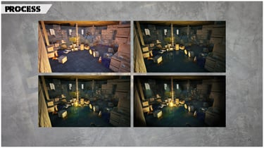 Production 3D : Modélisation, Sculpt, Rigging, VFX, Rendu 3D, Intégration dans moteur, Animation 3D, Shaders sur mesure, Particules, Post Processing, Texturing, Lighting, Look Development