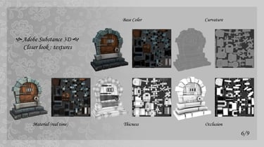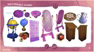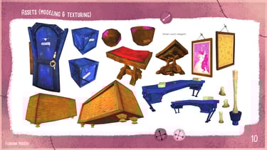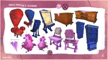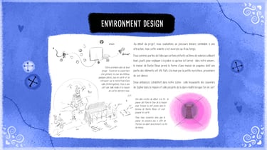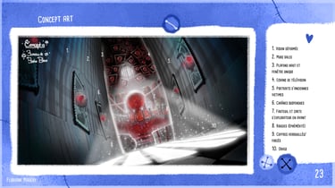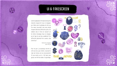 Blue Beard's Lair est un environnement narratif réalisé dans Unity où, en trinôme de game artists, nous avons réinterprété en version horrifique le conte pour enfants Barbe Bleue. Ce projet clôturait mon bachelor Game Art, le dernier avant que je ne me spécialise en 2D, ce qui explique qu'il y ait autant de production 2D que 3D. Même si l'ambiance est horrifique, le projet reste PEGI 12.