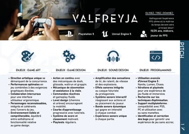 Valfreyja est un fast FPS développé pour la PS5 sous Unreal Engine 5 dans le cadre de mon projet de fin d’études en Master 2. Ce projet représentait un défi technique et artistique, car nous découvrions le moteur et je sortais de ma zone de confort en direction artistique.