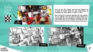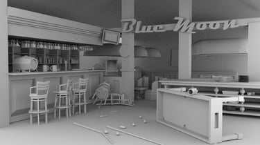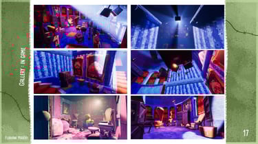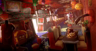 Dinodiner est un projet d'environnement intégrant du storytelling, représentant un diner où un anniversaire a dégénéré. Le projet comprenait une phase de conception 2D avec une illustration de concept art, suivie de la production 3D en binôme, en réalisant le concept d'un autre élève.