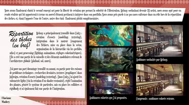 Dans notre équipe de 18 personnes (artistes 2D/3D, programmeurs, sound designers, producers), nous avons travaillé en quasi totale autonomie, avec des retours uniquement lors des milestones.