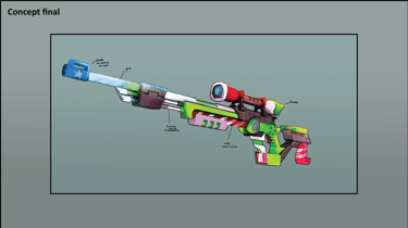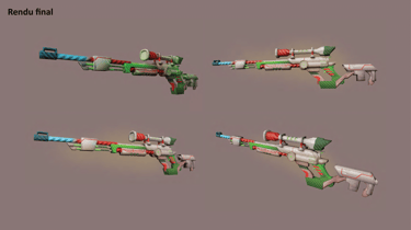 Exercice réalisé en fin d'année pour compenser les examens manqués en raison de problèmes de santé. Le design de l'arme devait : être un archétype de sniper, s’inspirer du thème de Noël, et s’adapter au style du jeu Overwatch.